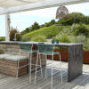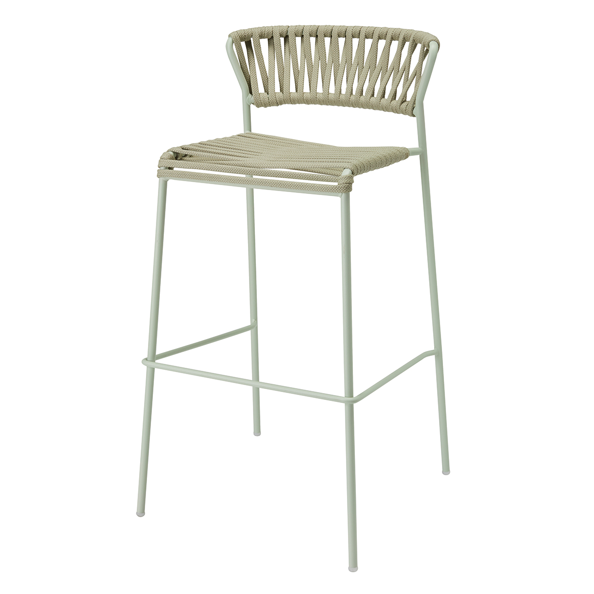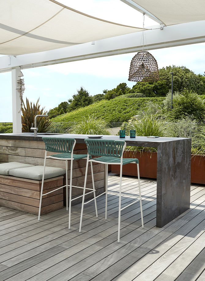 Asiento y respaldo tejidos con cuerda náutica.