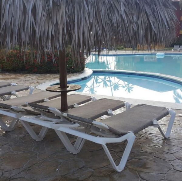Fabricada en resina de polipropileno reciclable y tejido recambiable PVC poliéster.