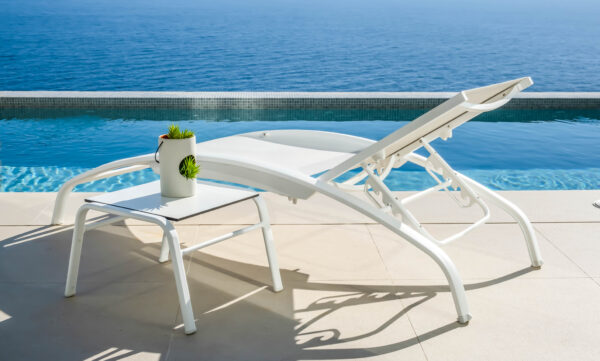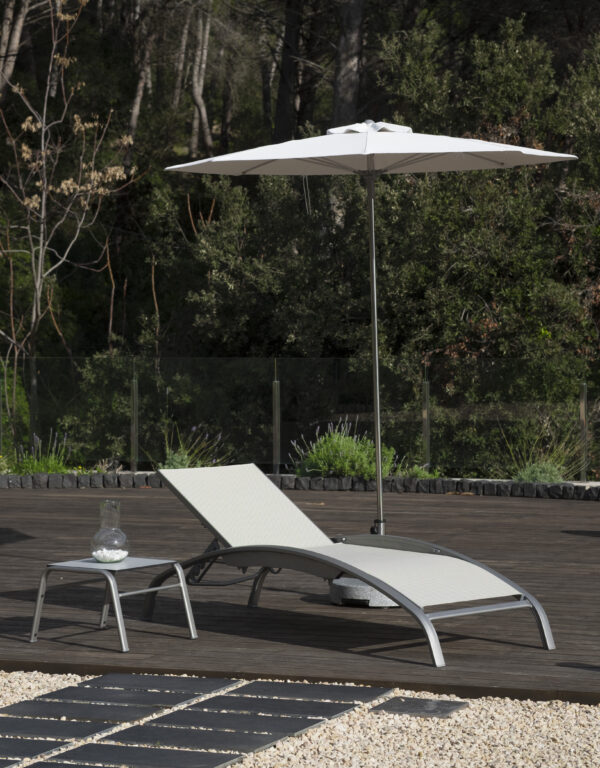 Chasis en aluminio. Confección realizada en hilos de poliester cubiertos en PVC.
