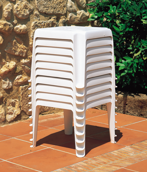 Mesa baja de resina de polipropileno apilable 48 x 48cm.