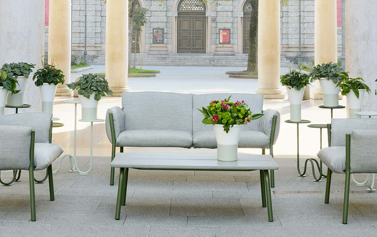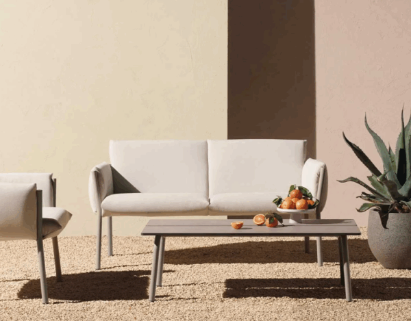 Estrutura de acero cincado y pintado, con tejido acrílico.
